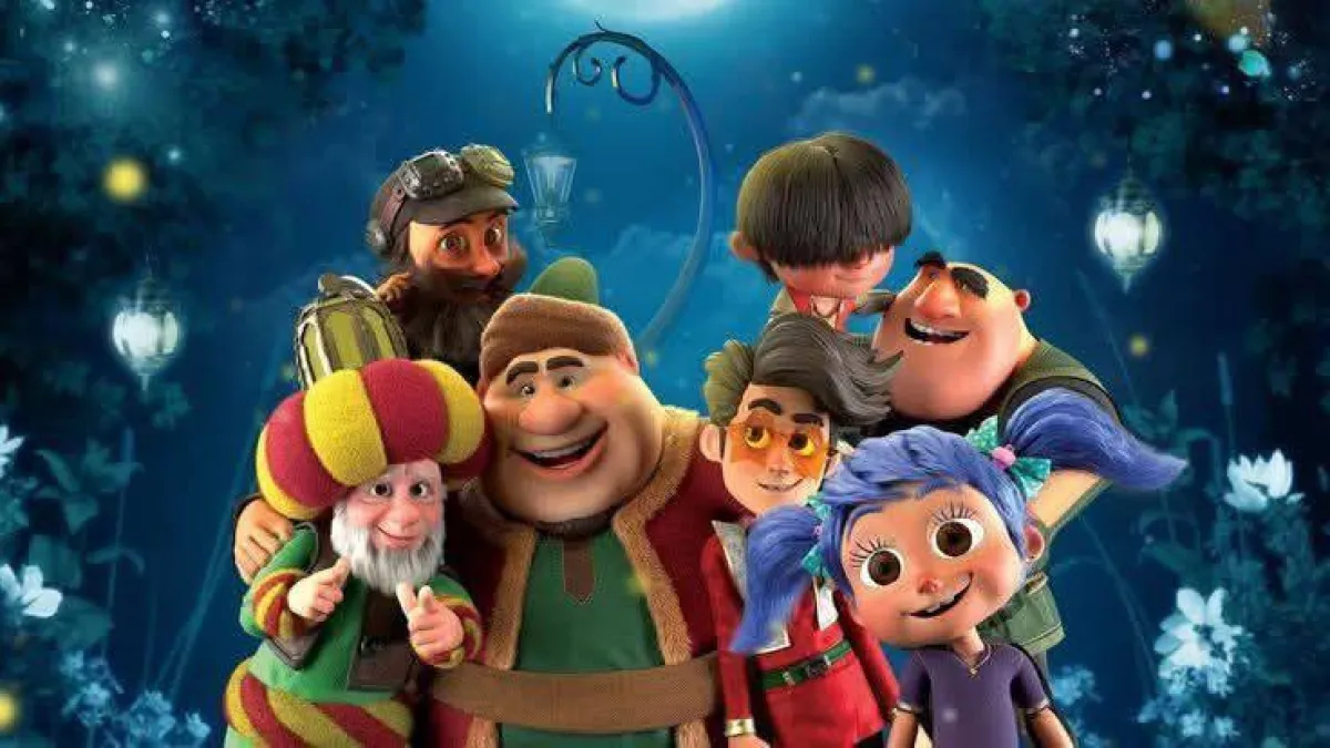 Warm cinematic Ramadan studio lighting. Golden key light sculpting human and cartoon faces, soft amber rim light separation, smooth shadows, rich contrast. Film-grade commercial color grading with glowing highlights.